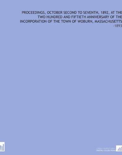 See all customer reviews...Proceedings, October Second to Seventh, 1892, at the Two Hundred and Fiftieth Anniversary of the Incorporation of the Town of Woburn, Massa PDF