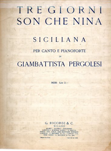 You can find the link that our company offer in site to download and install TRE GIORNI SON CHE NINA (Siciliana) Per Canto E Pianoforte, #36235, Only In Italian, By Giambattista Pergolesi (composer) By acquiring the budget friendly price and obtain finished downloading, you have completed to the initial stage to get this TRE GIORNI SON CHE NINA (Siciliana) Per Canto E Pianoforte, #36235, Only In Italian, By Giambattista Pergolesi (composer) It will certainly be nothing when having actually purchased this publication and not do anything. Review it and reveal it! Invest your few time to just read some sheets of page of this publication TRE GIORNI SON CHE NINA (Siciliana) Per Canto E Pianoforte, #36235, Only In Italian, By Giambattista Pergolesi (composer) to check out. It is soft documents and simple to read wherever you are. Enjoy your brand-new routine.