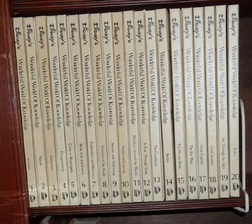 Wonderful 20 Volume Children's Encyclopedia, with beautiful photographs, artwork, drawings and Disney characters. The topics are: Volume 1 - Animals Volume 2 - Nature Volume 3 - Inventions Volume 4 - Transportation Volume 5 - Caves to Skyscrapers Volume 6 - Birds, Fish, and Insects Volume 7 - Exploration and Discovery Volume 8 - Treasures of the Earth Volume 9 - Science and Technology Volume 10 - Myths and Legends Volume 11 - Holidays Around the World Volume 12 - A Tour Through Time Volume 13 - The Continents Volume 14 - Stories Volume 15 - The Human Body Volume 16 - The Far West Volume 17 - Great Capitals Volume 18 - Great Leaders Volume 19 - Art Through the Ages Volume 20 - Index